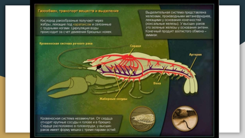 Слайд 18Кровеносная система незамкнутая. Сердце с остиями на спинной стороне тела.