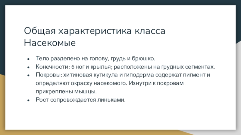 Слайд 6Тело покрыто плотной хитиновой оболочкой, образующей наружный скелет, к ней присоединяются внутренние мышцы. Рост
