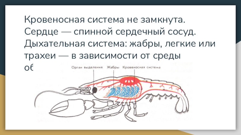 Слайд 9Кровеносная система не замкнута. Сердце — спинной сердечный сосуд.