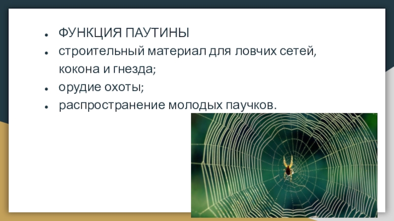 Слайд 23ФУНКЦИЯ ПАУТИНЫ