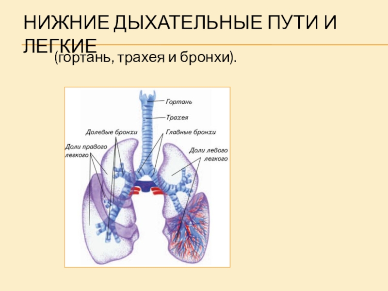 Нижние дыхательные пути и легкие(гортань, трахея и бронхи).