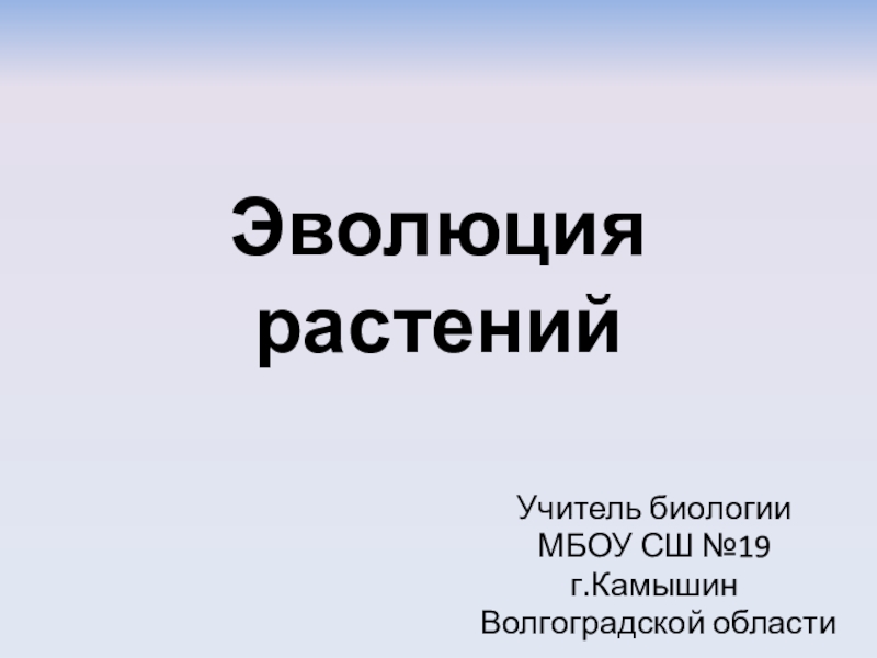 Эволюция растенийУчитель биологии МБОУ СШ №19г.Камышин Волгоградской области