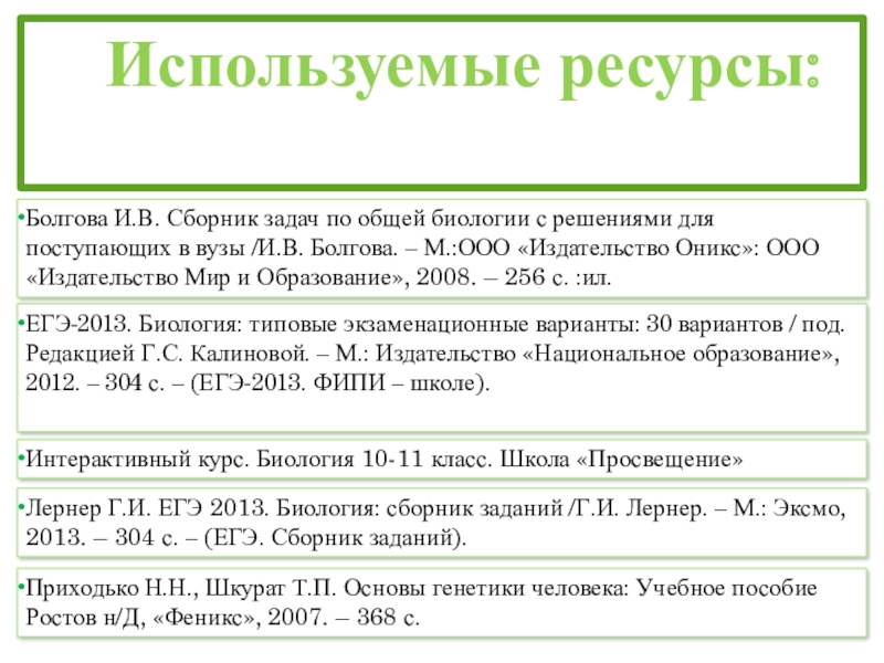ЕГЭ-2013. Биология: типовые экзаменационные варианты: 30 вариантов / под. Редакцией Г.С. Калиновой. – М.: Издательство «Национальное образование», 2012. – 304 с. – (ЕГЭ-2013. ФИПИ – школе).