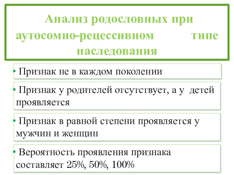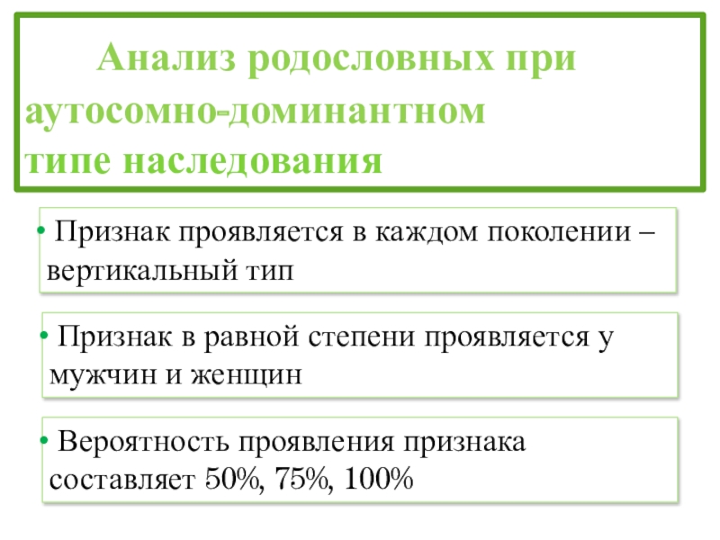 Вероятность проявления признака составляет 50%, 75%, 100%