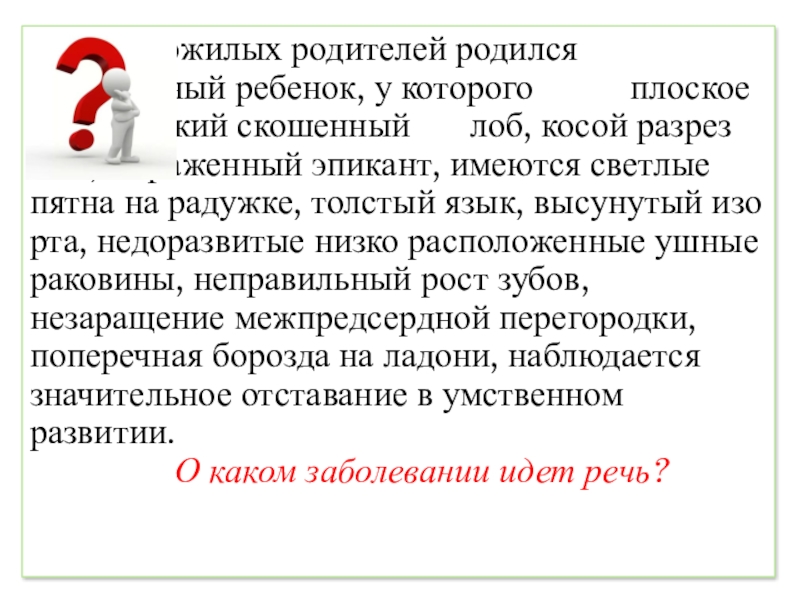 Признак у родителей отсутствует, а у детей проявляется