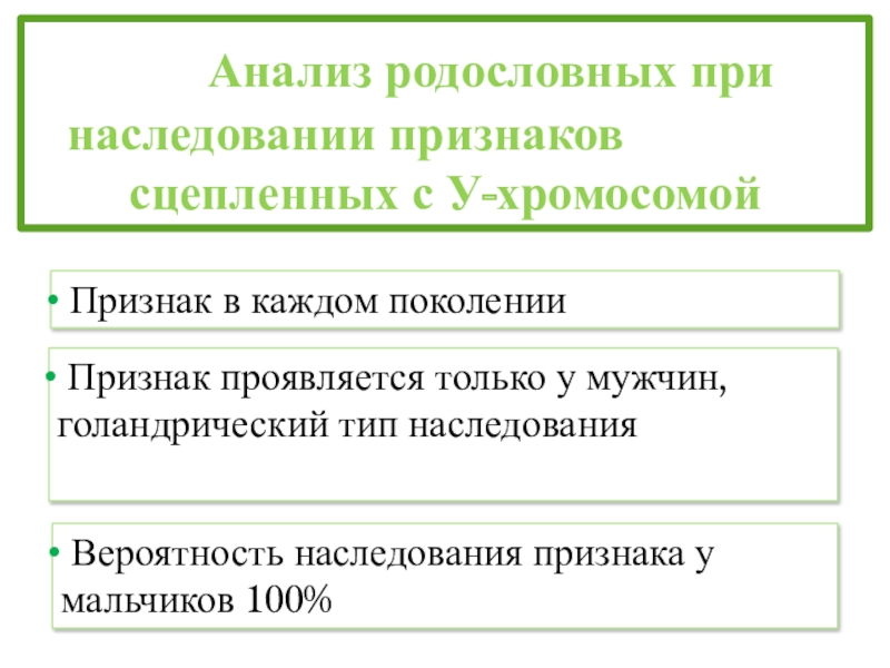 Признак проявляется только у мужчин, голандрический тип наследования