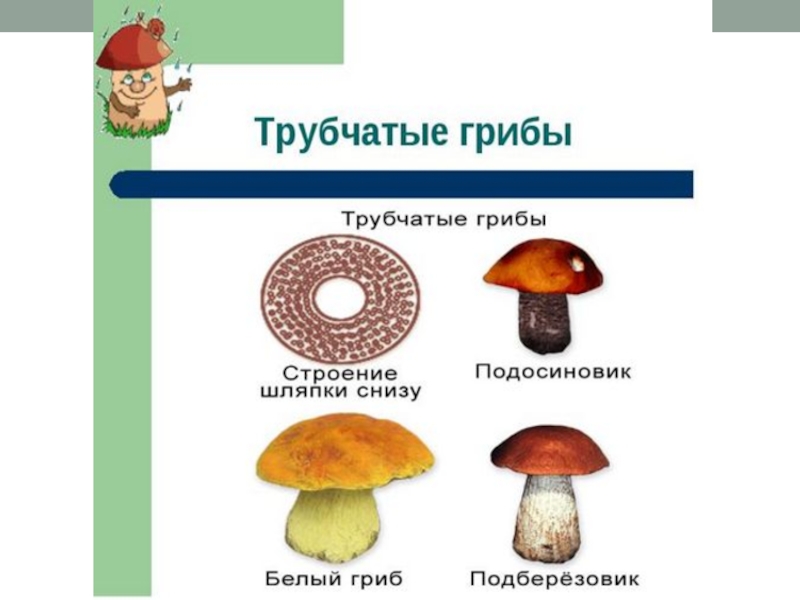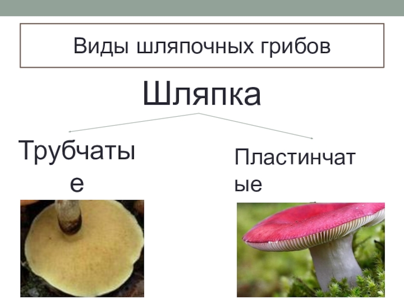 Виды шляпочных грибовШляпкаТрубчатые грибыПластинчатыегрибы