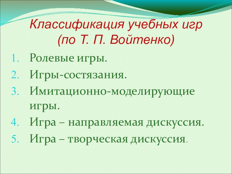 Слайд 6Классификация учебных игр