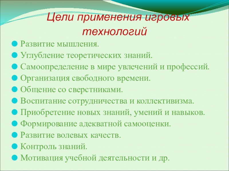 Слайд 4 Цели применения игровых технологий