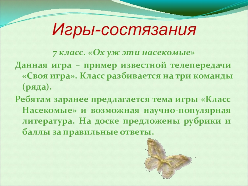 7 класс. «Ох уж эти насекомые»