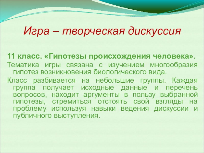 Слайд 13Игра – творческая дискуссия