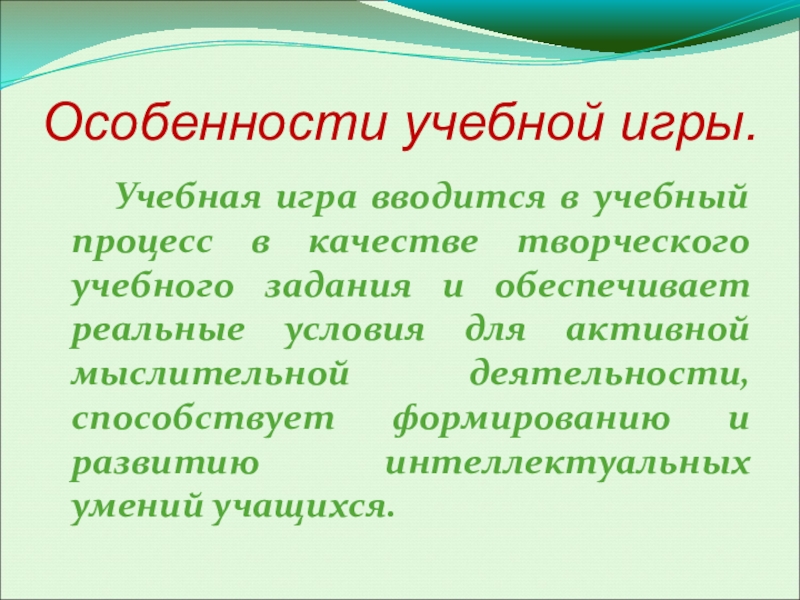 Слайд 2Особенности учебной игры.
