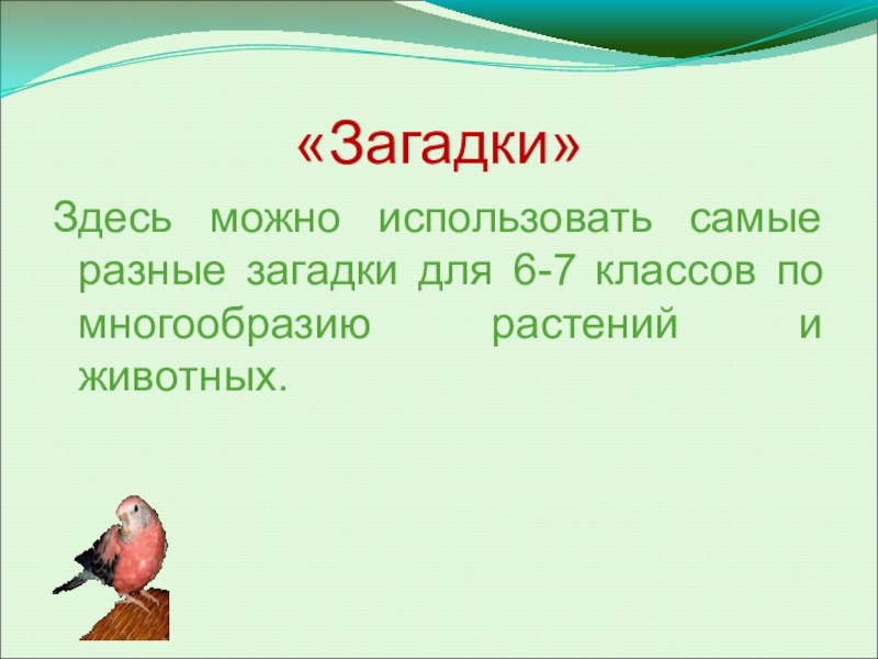 Здесь можно использовать самые разные загадки для 6-7 классов по многообразию