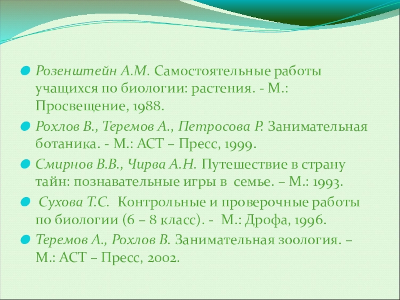Розенштейн А.М. Самостоятельные работы учащихся по биологии: растения. - М.: Просвещение,
