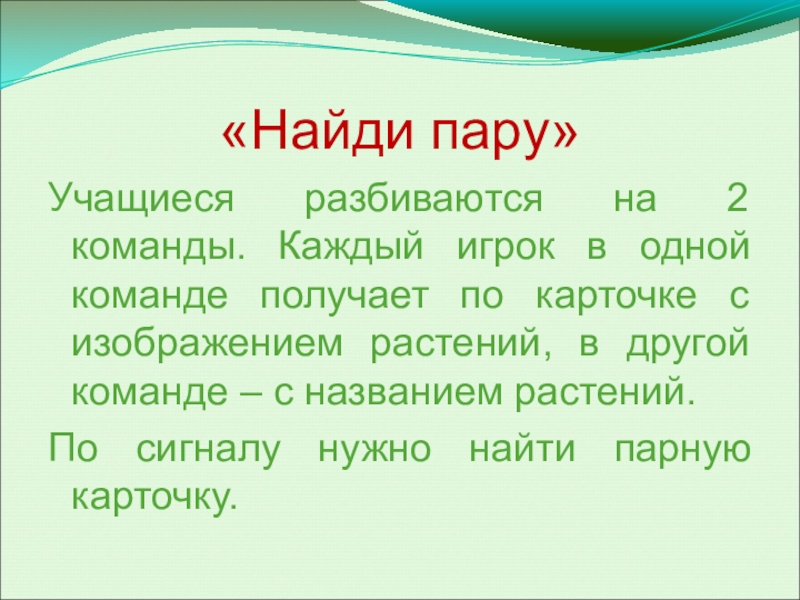 получает по карточке с изображением растений, в другой команде – с названием растений.