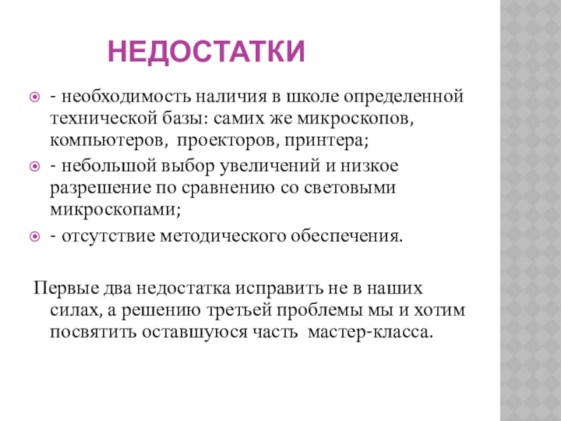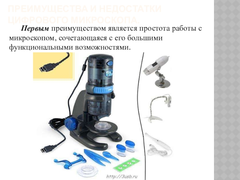 Слайд 9Преимущества и недостатки цифрового микроскопа.