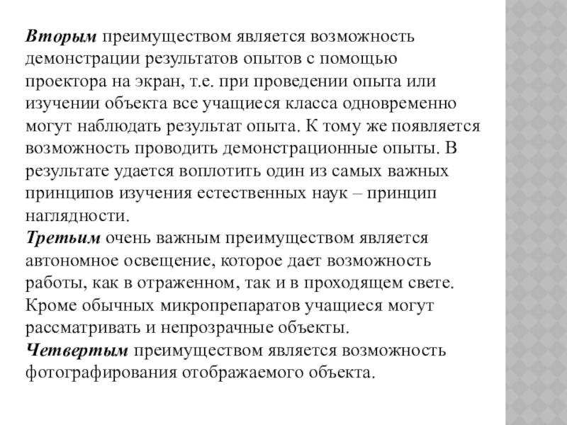 Слайд 10Вторым преимуществом является возможность демонстрации результатов опытов с помощью проектора на