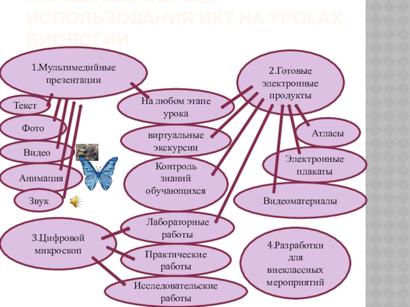 Слайд 6Основные формы использования ИКТ на уроках биологии