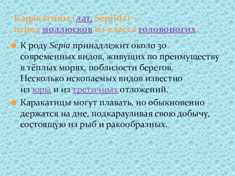 Карака́тицы (лат. Sepiida) — отряд моллюсков из класса головоногих.