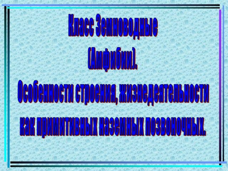 Класс Земноводные.Особенности строения, жизнедеятельности как примитивных наземных позвоночных.
