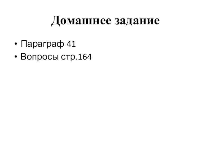 Домашнее заданиеПараграф 41Вопросы стр.164