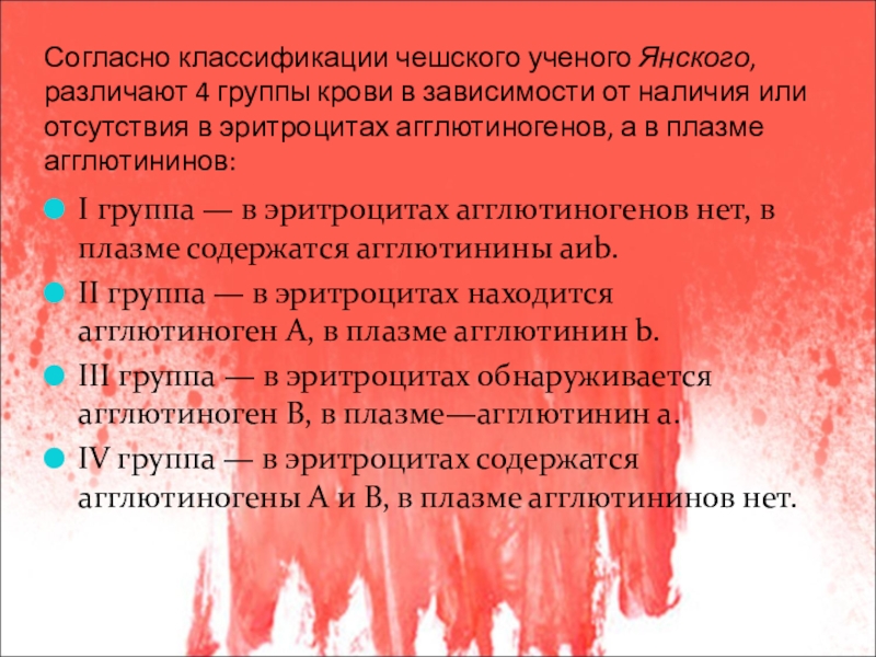 IV группа — в эритроцитах содержатся агглютиногены А и В, в плазме агглютининов нет.
