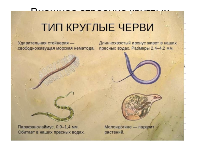 Слайд 7Внешнее строение круглых червей