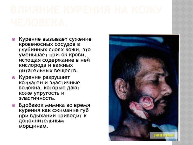 Слайд 17ВЛИЯНИЕ КУРЕНИЯ НА КОЖУ ЧЕЛОВЕКА.