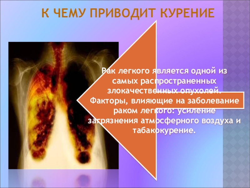Слайд 23Рак легкого является одной из самых распространенных злокачественных опухолей. Факторы, влияющие