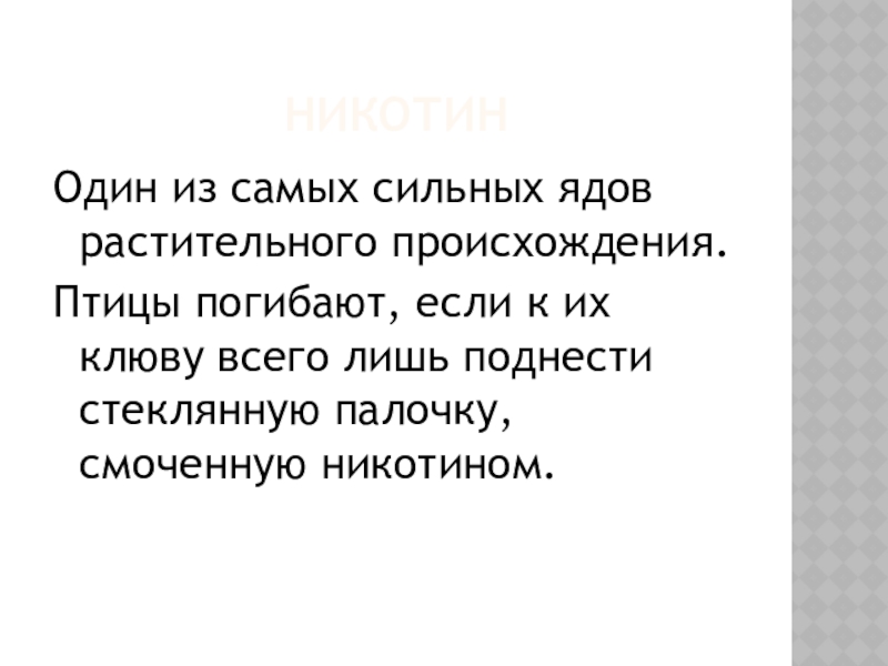 их клюву всего лишь поднести стеклянную палочку, смоченную никотином.