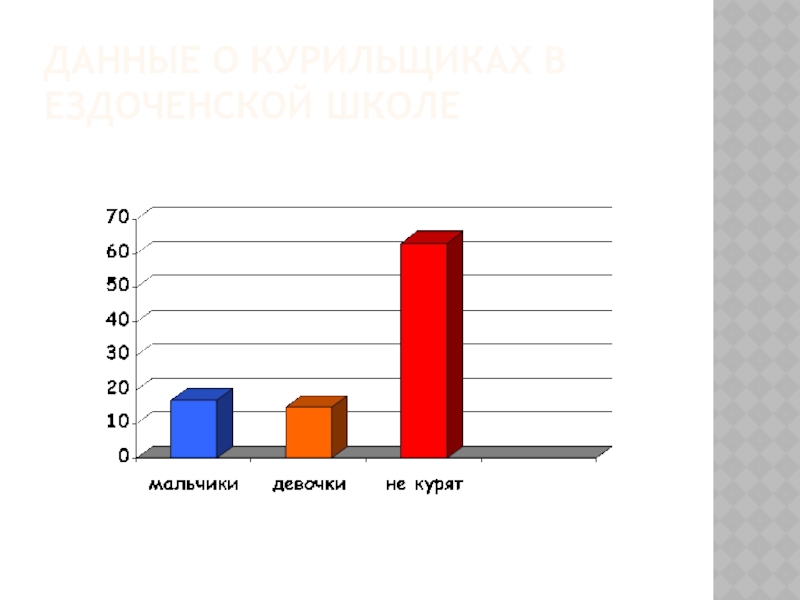 Слайд 9ДАННЫЕ О КУРИЛЬЩИКАХ В ЕЗДОЧЕНСКОЙ ШКОЛЕ