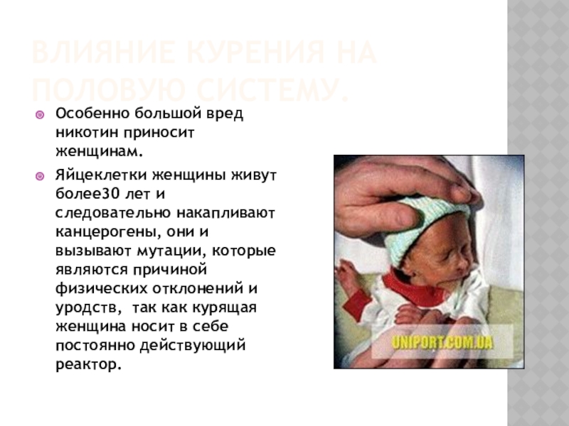 Слайд 18ВЛИЯНИЕ КУРЕНИЯ НА ПОЛОВУЮ СИСТЕМУ.