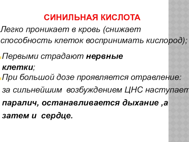 Легко проникает в кровь (снижает способность клеток воспринимать кислород);