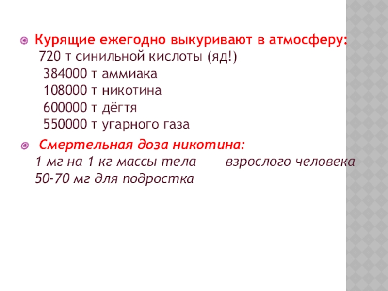 Слайд 3Курящие ежегодно выкуривают в атмосферу: