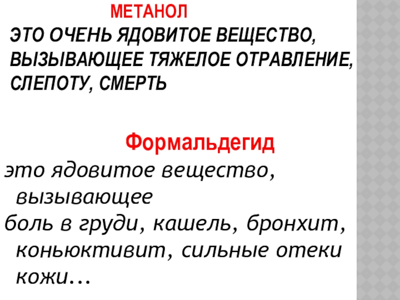 ЭТО ОЧЕНЬ ЯДОВИТОЕ ВЕЩЕСТВО, ВЫЗЫВАЮЩЕЕ ТЯЖЕЛОЕ ОТРАВЛЕНИЕ, СЛЕПОТУ, СМЕРТЬ