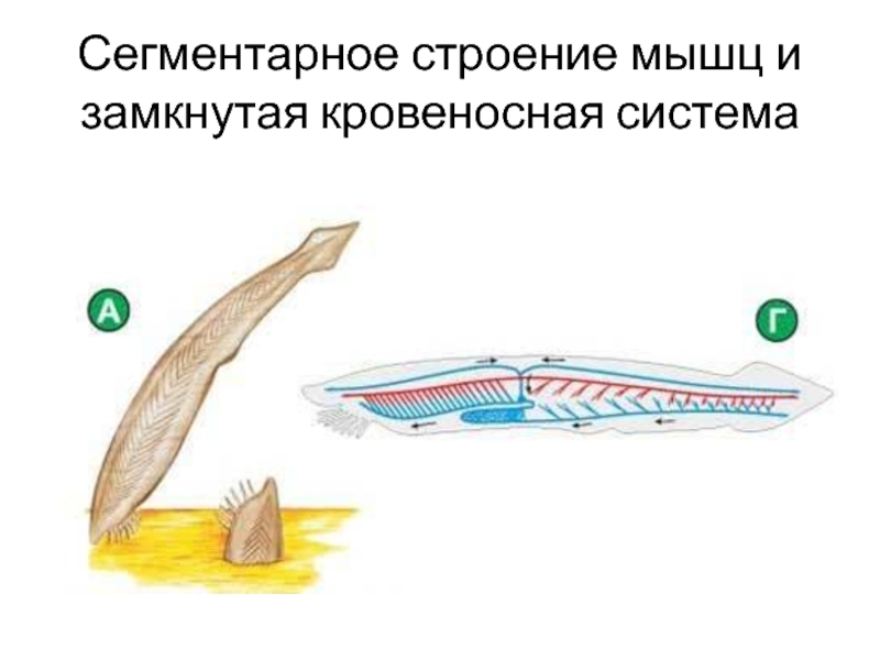 Слайд 4Сегментарное строение мышц и замкнутая кровеносная система