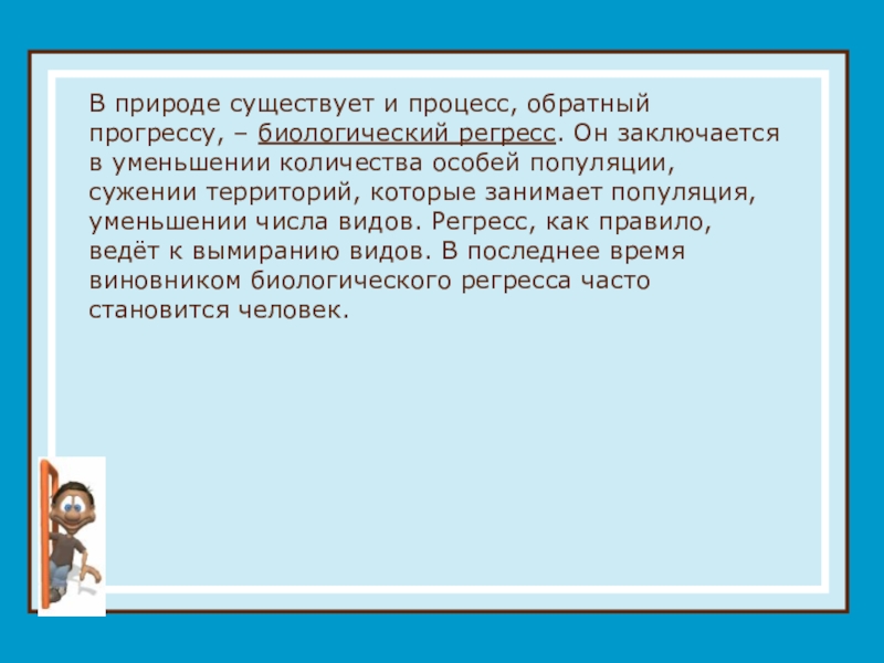 Слайд 8В природе существует и процесс, обратный прогрессу, – биологический регресс. Он