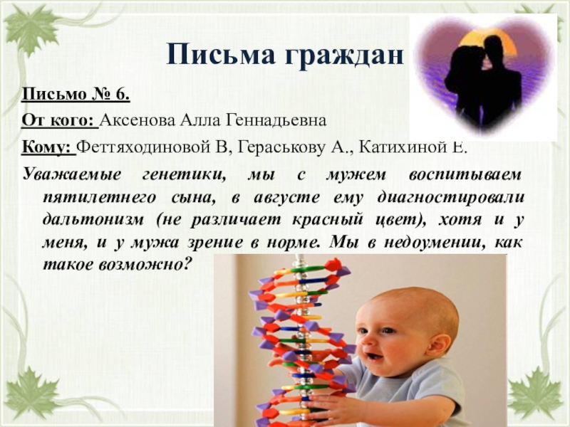 Уважаемые генетики, мы с мужем воспитываем пятилетнего сына, в августе ему диагностировали дальтонизм (не различает красный цвет), хотя и у меня, и у мужа зрение в норме. Мы в недоумении, как такое возможно?