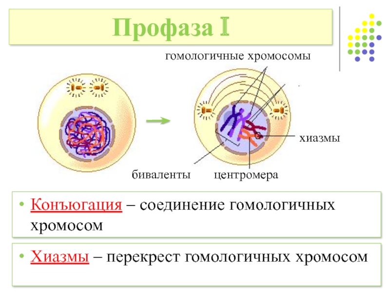 2. В профазеI происходит конъюгации и кроссинговера
