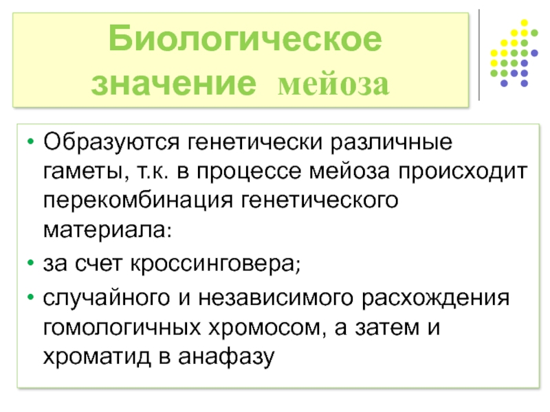 Биологическое значение мейоза