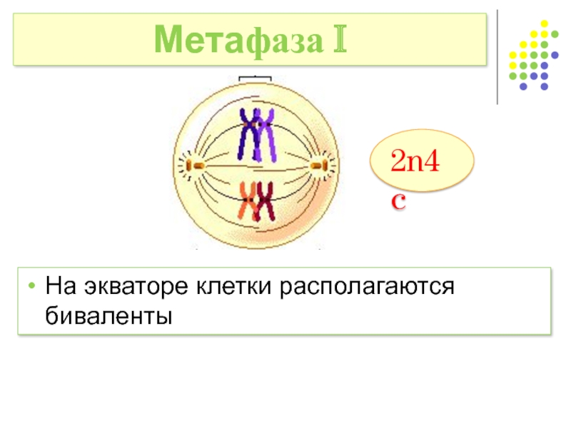 3. В метафазе I гомологичные удвоенные хромосомы выстраиваются по экватору парами (бивалентами)