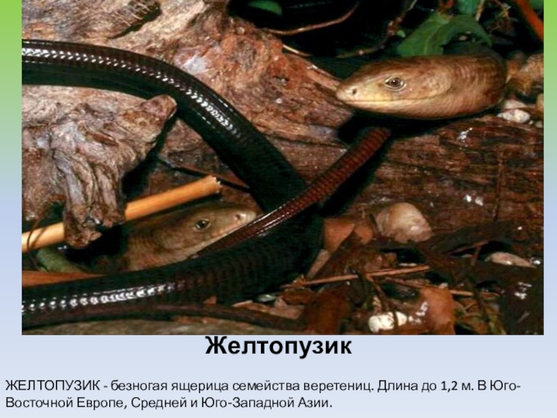 ЖЕЛТОПУЗИК - безногая ящерица семейства веретениц. Длина до 1,2 м. В