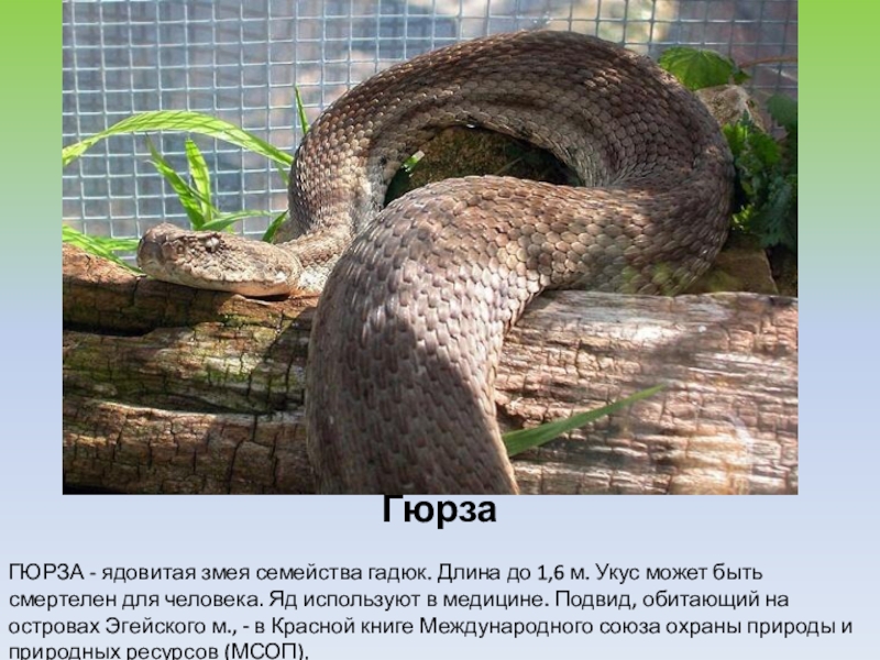 ГЮРЗА - ядовитая змея семейства гадюк. Длина до 1,6 м. Укус
