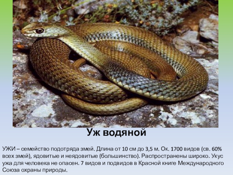 УЖИ – семейство подотряда змей. Длина от 10 см до