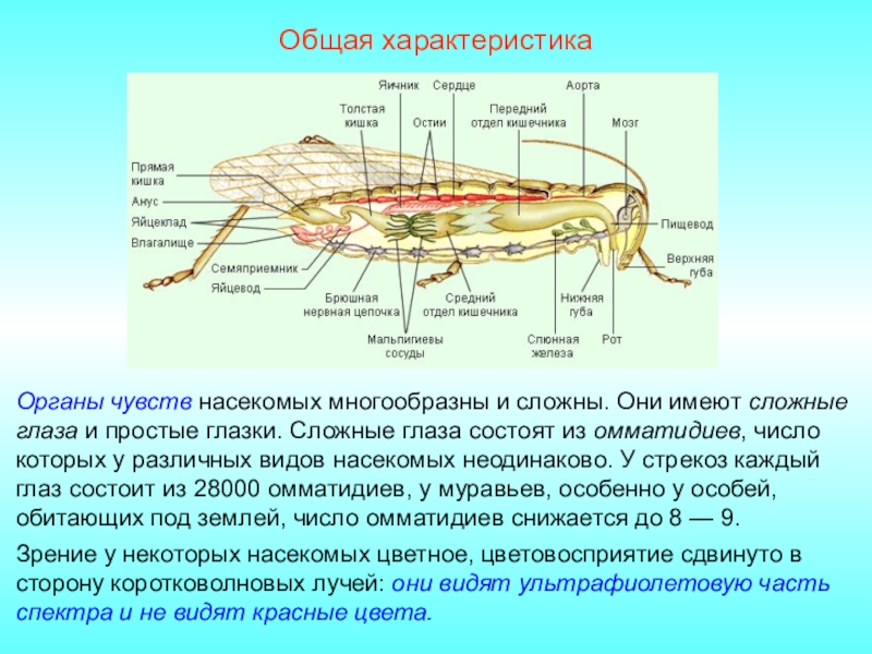 Органы чувств насекомых многообразны и сложны. Они имеют сложные глаза
