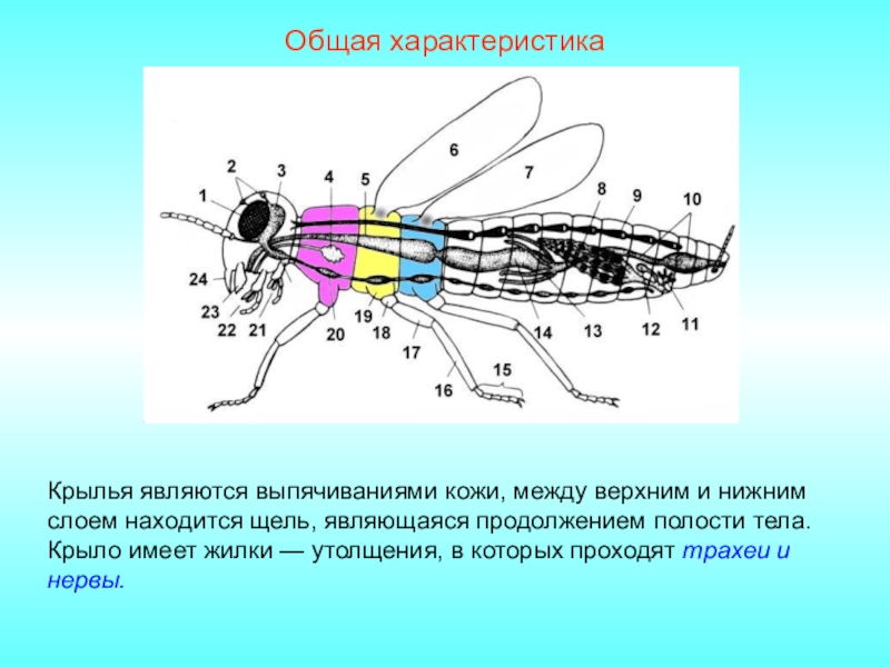 щель, являющаяся продолжением полости тела. Крыло имеет жилки — утолщения, в которых проходят трахеи и нервы.