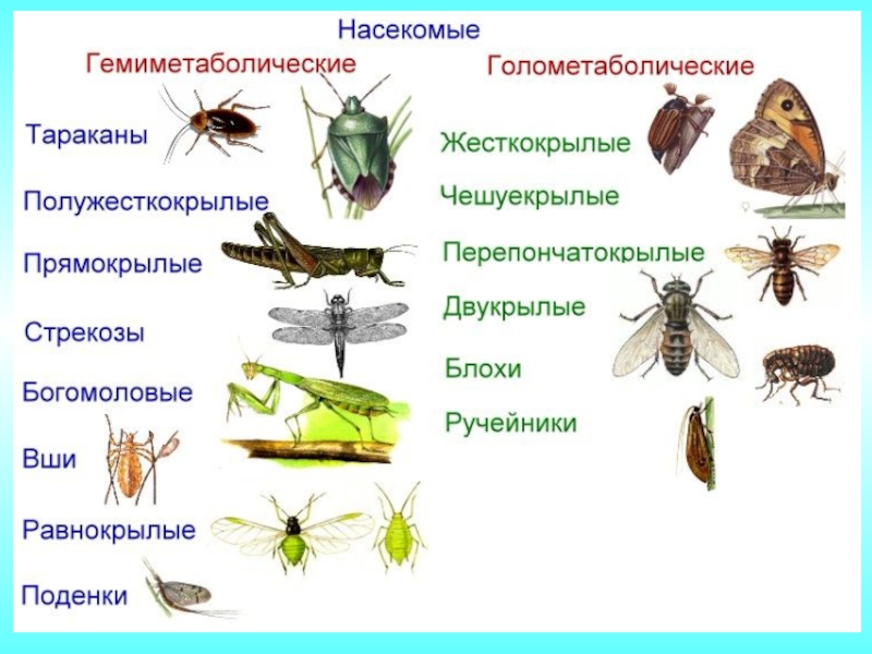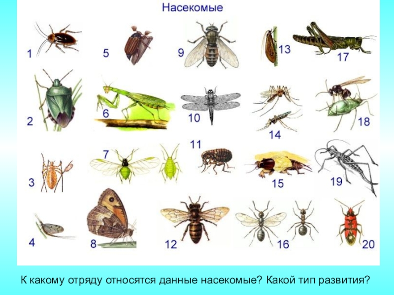 Слайд 42К какому отряду относятся данные насекомые? Какой тип развития?
