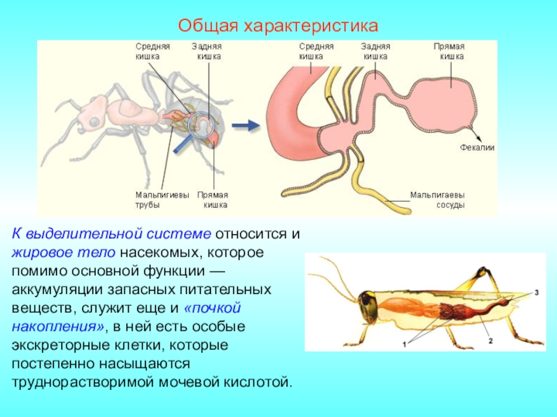 К выделительной системе относится и жировое тело насекомых, которое помимо
