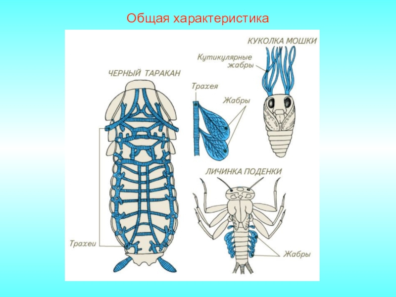 Трахеи пронизывают все тело насекомого, разветвляются на все более тонкие трубочки — трахеолы и могут образовывать небольшие расширения — воздушные мешки.