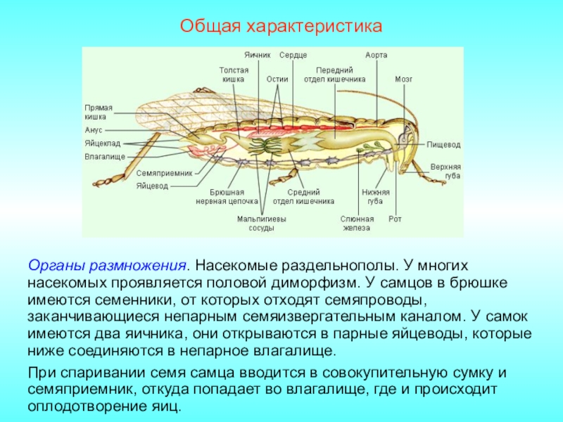 Органы размножения. Насекомые раздельнополы. У многих насекомых проявляется половой диморфизм.